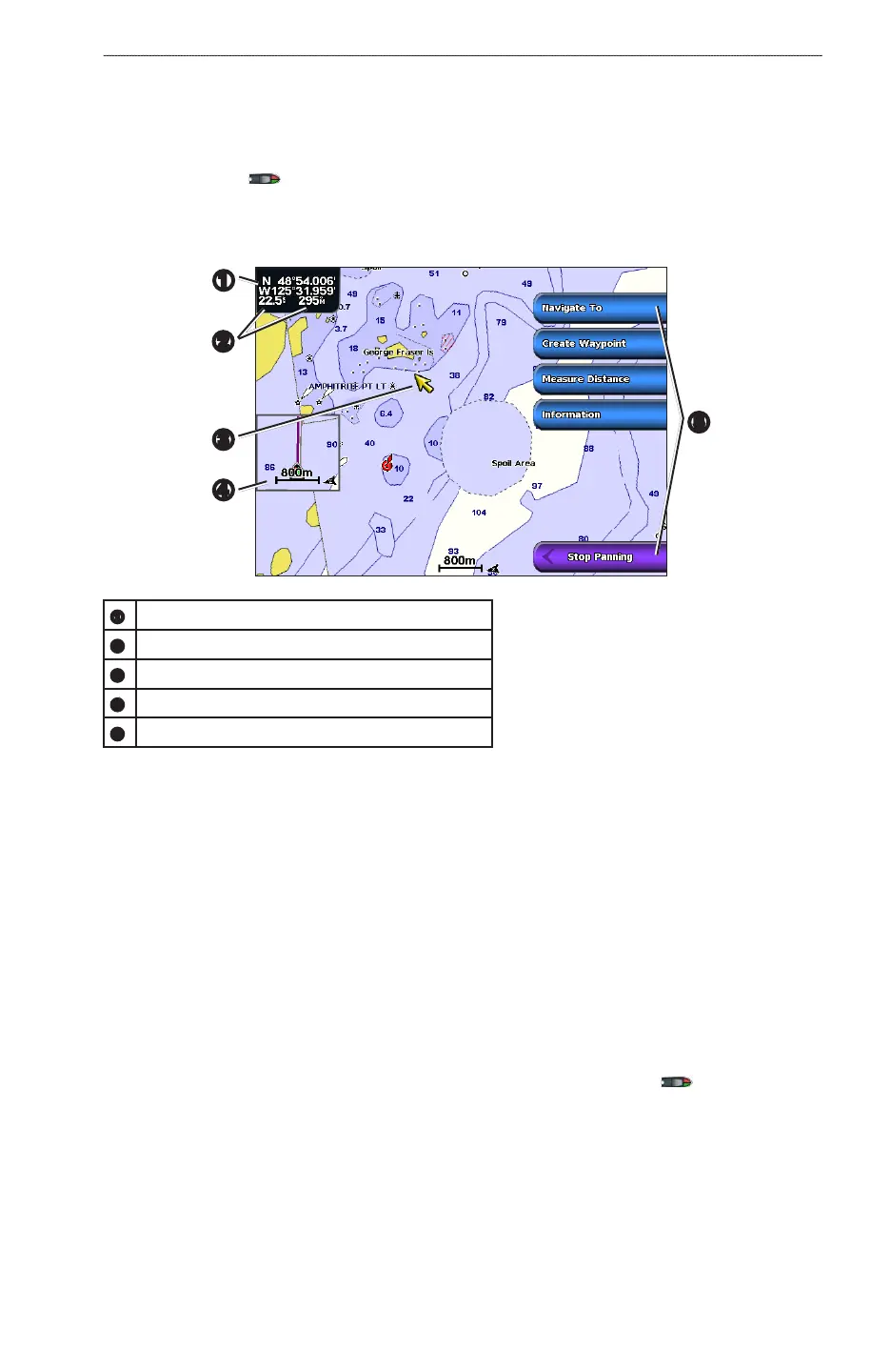 • For the GPSMAP 5000 series, touch and drag the Navigation screen to pan the map.