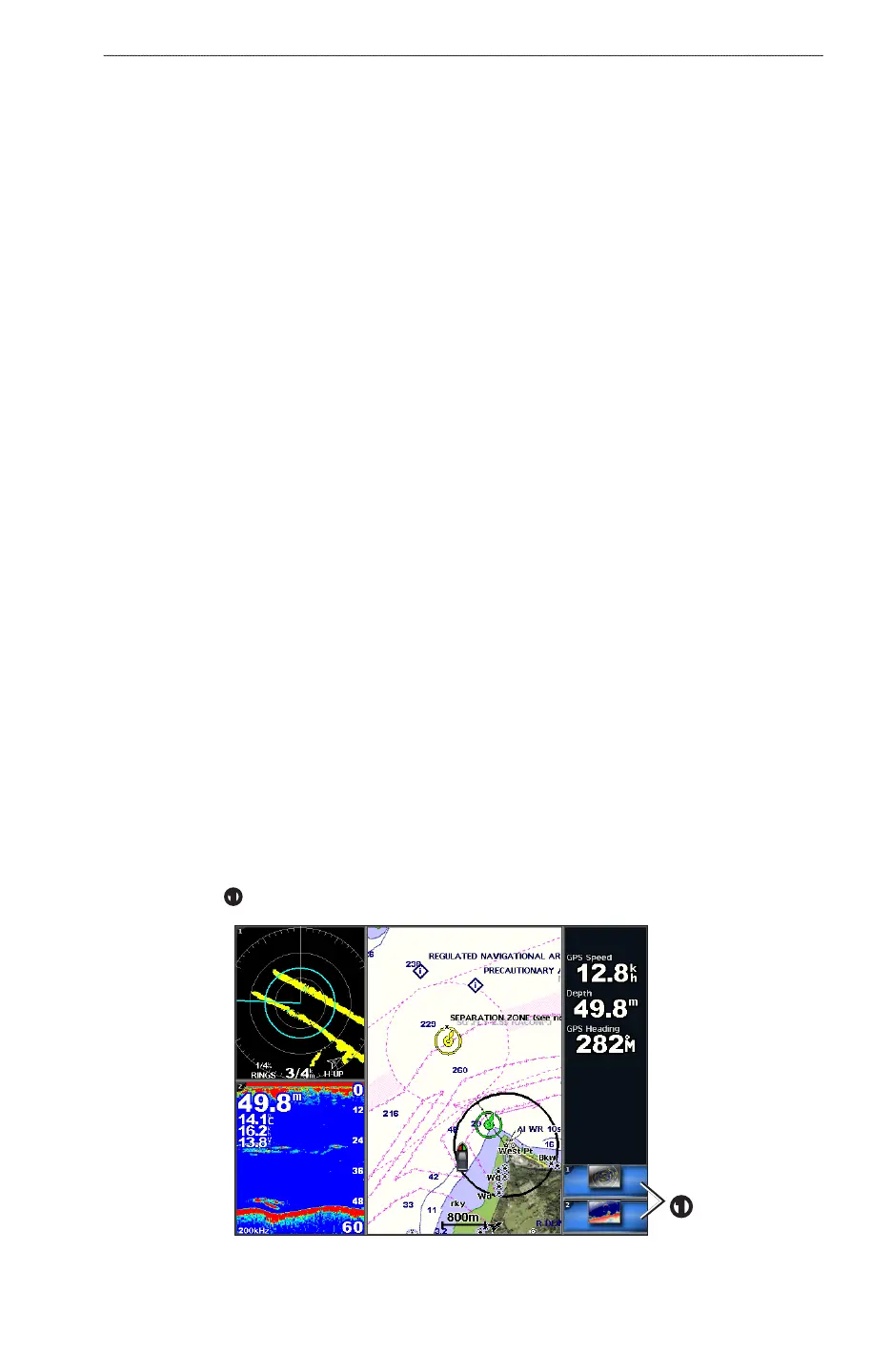 • For the GPSMAP 5000 series, select the left and right arrows beneath the gauge.