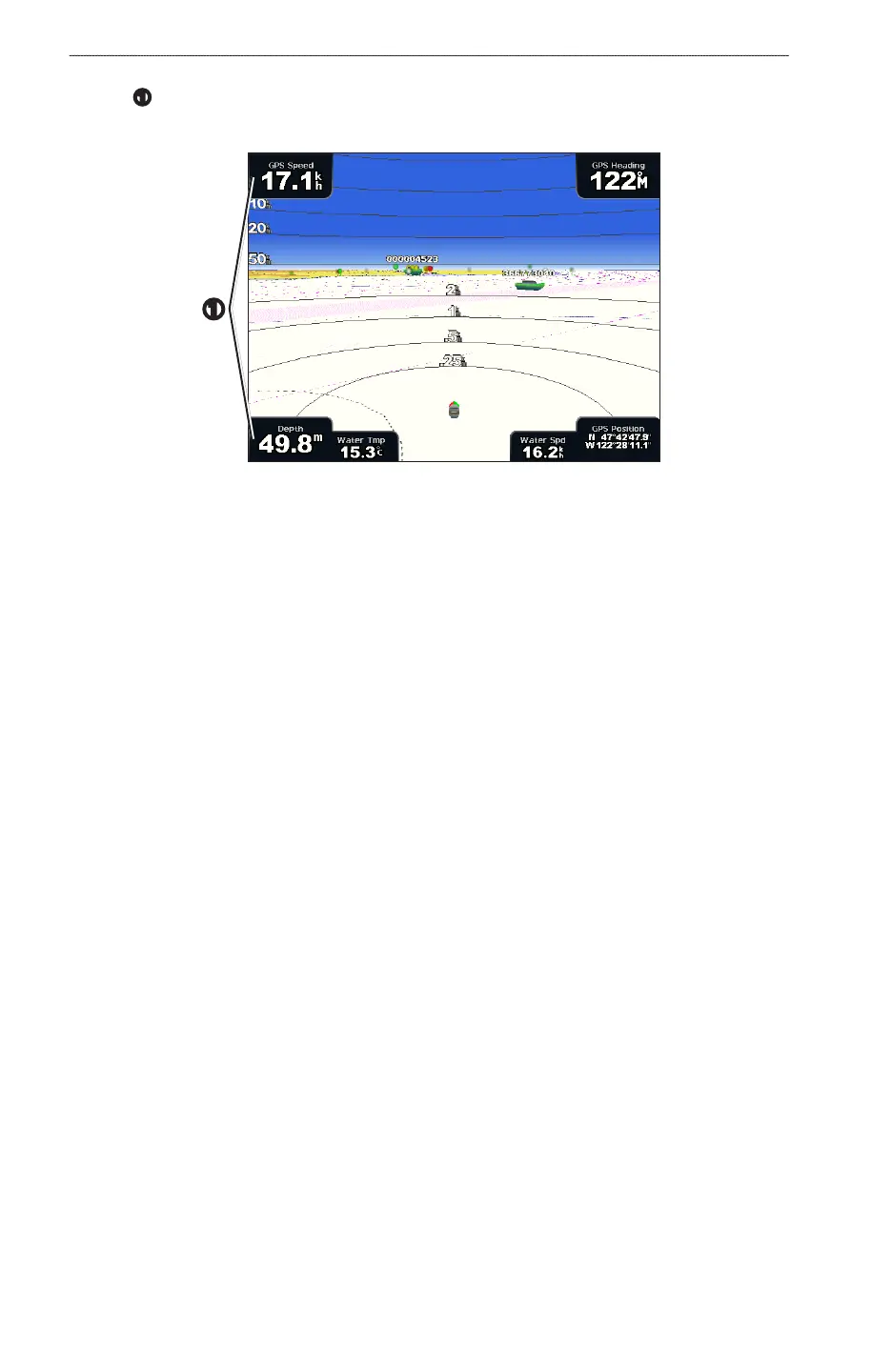 The navigation data bar appears in a row across the top of the chart. The navigation data bar can show distance
