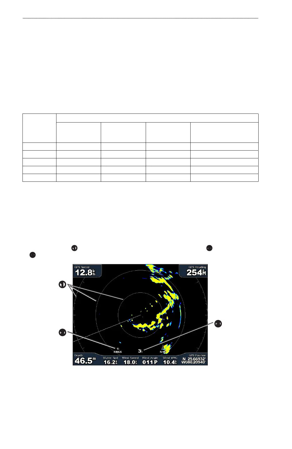 A full-screen image of the gathered radar information appears. Your position is in the center of the screen,