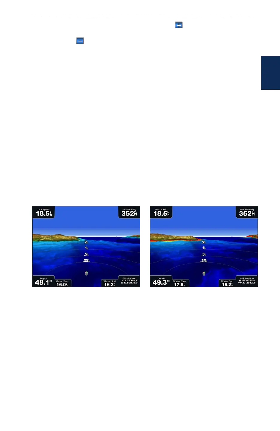 series) or touch the key (GPSMAP 5000 series) to move the view away from the boat.