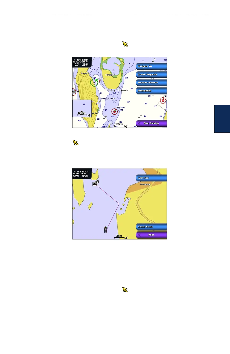 3. If you selected Use Chart, use the map pointer ( ) (GPSMAP 4000 series) or touch the