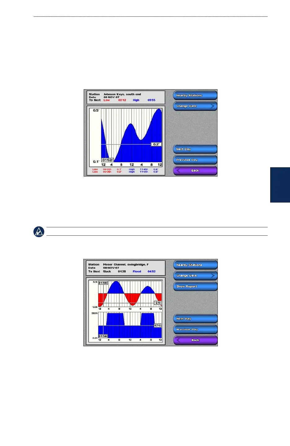 To view tide information from the Home screen, select Information > Tides/Currents > Tides.