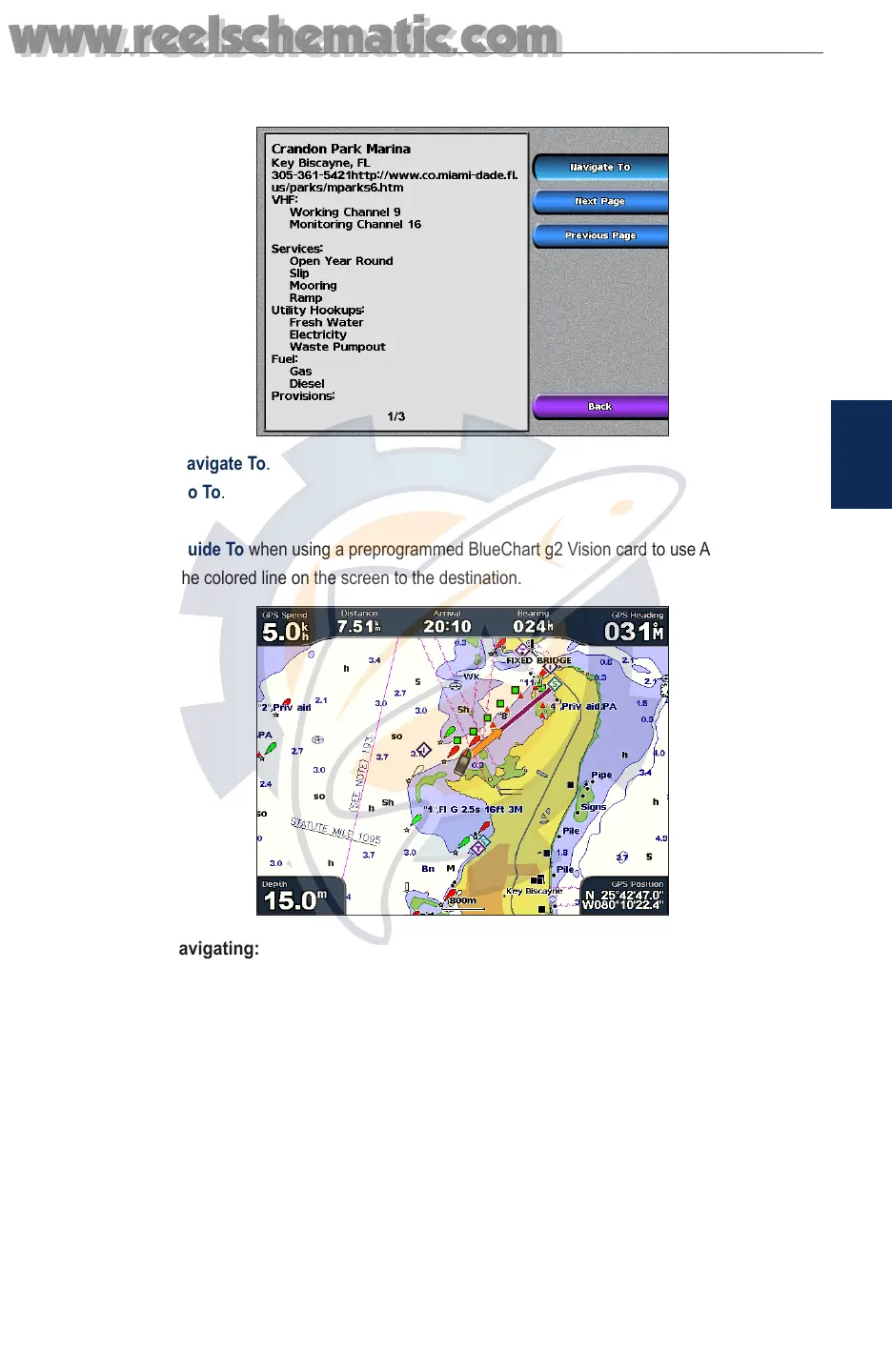 3. Select the marine service item to which you want to navigate. A screen containing information