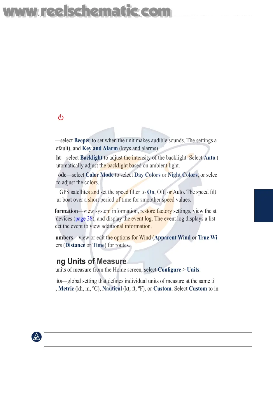 To change units of measure from the Home screen, select Congure > Units.