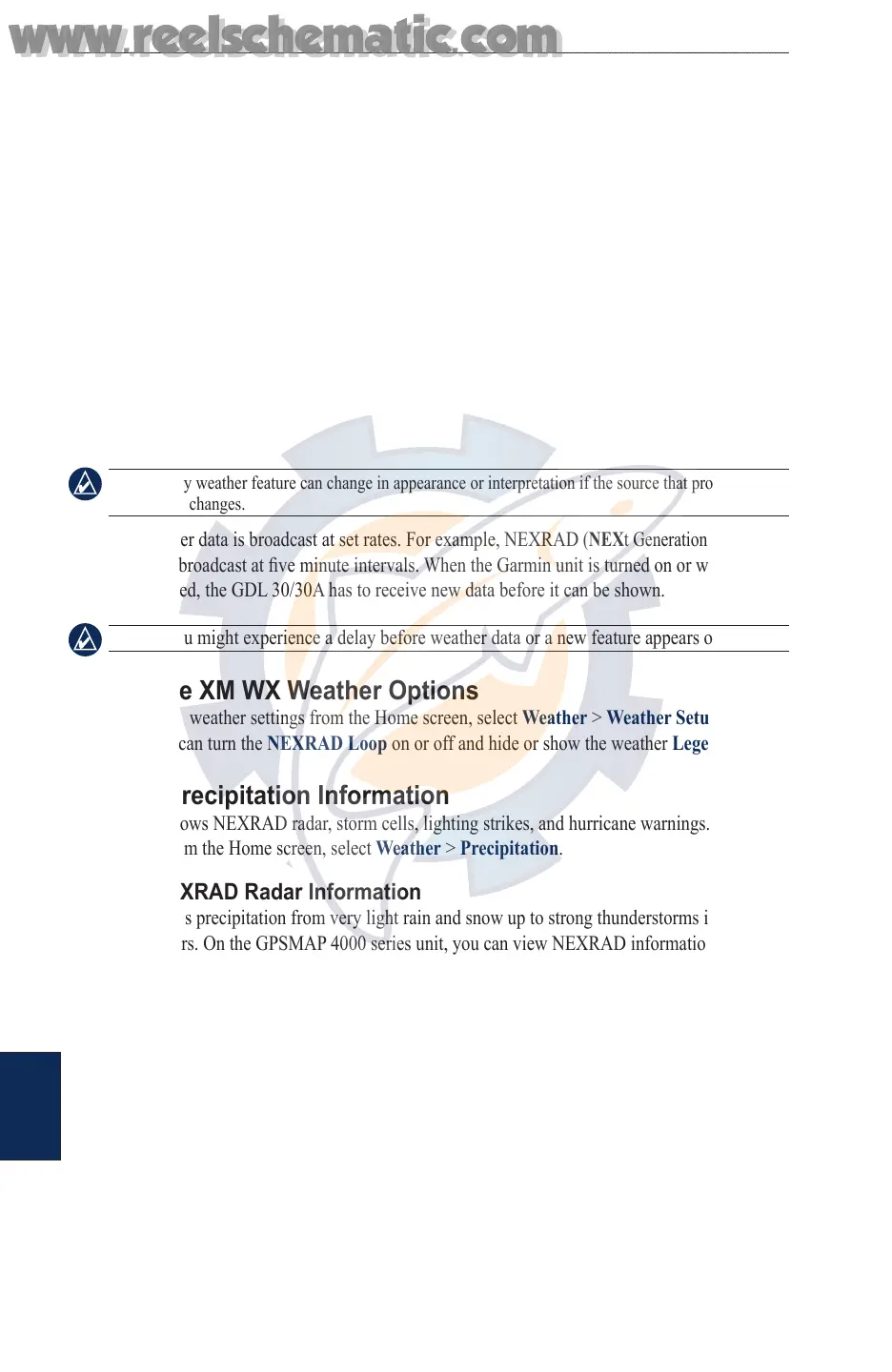 shades and colors. On the GPSMAP 4000 series unit, you can view NEXRAD information as an