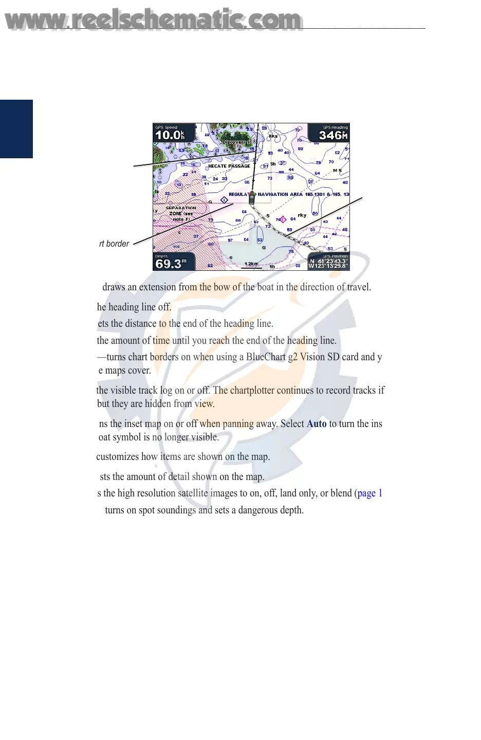 Chart Borders—turns chart borders on when using a BlueChart g2 Vision SD card and you want to