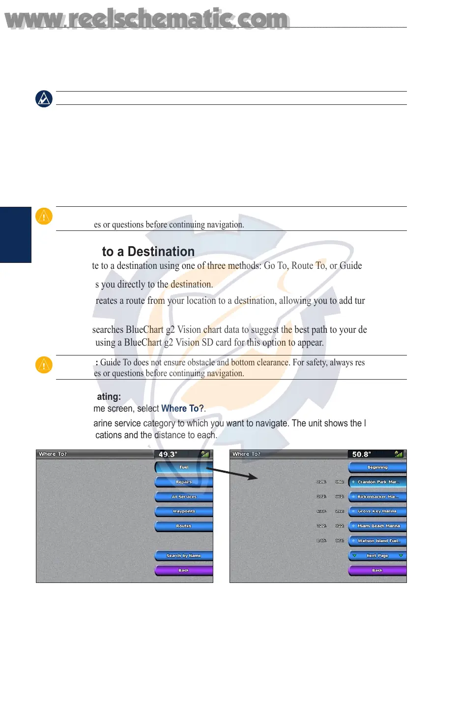 Guide To—searches BlueChart g2 Vision chart data to suggest the best path to your destination.