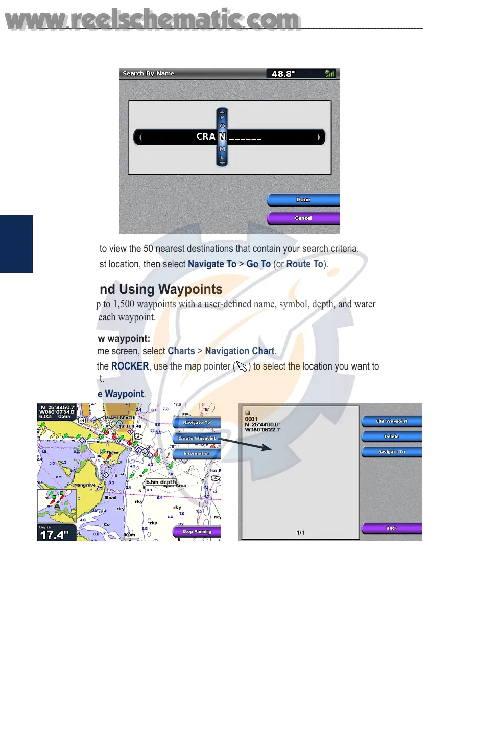 You can store up to 1,500 waypoints with a user-dened name, symbol, depth, and water