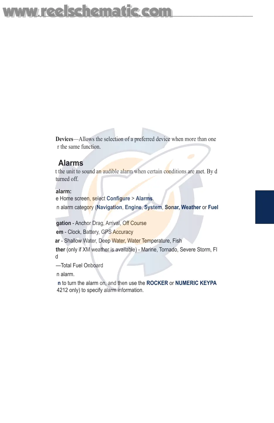 2. Select an alarm category (Navigation, Engine, System, Sonar, Weather or Fuel). Alarms
