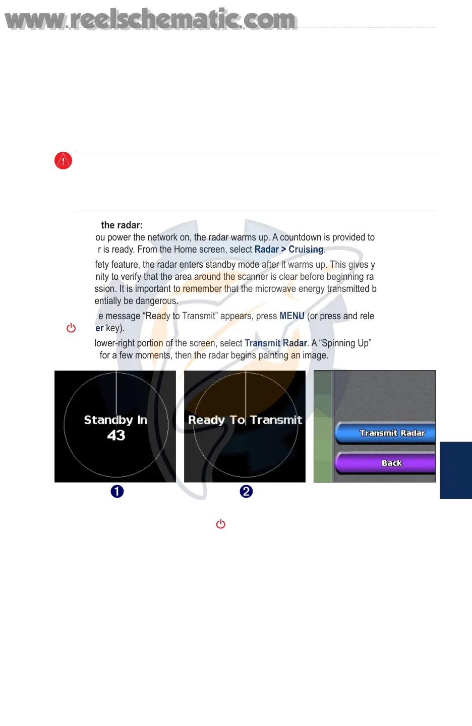 WARNING: The marine radar transmits microwave energy that has the potential to be harmful to