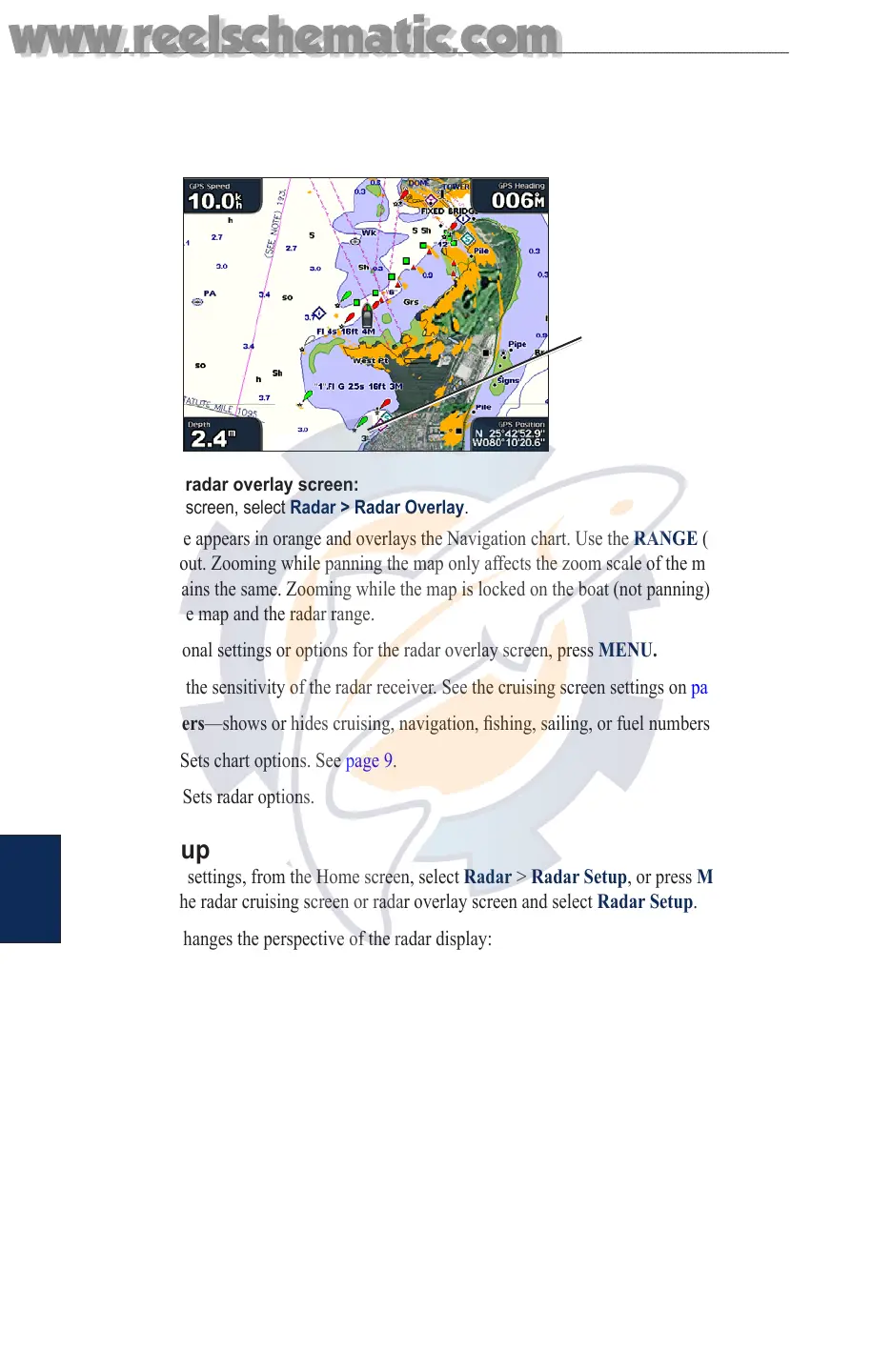 The radar overlay screen places the radar picture directly onto the navigation chart.