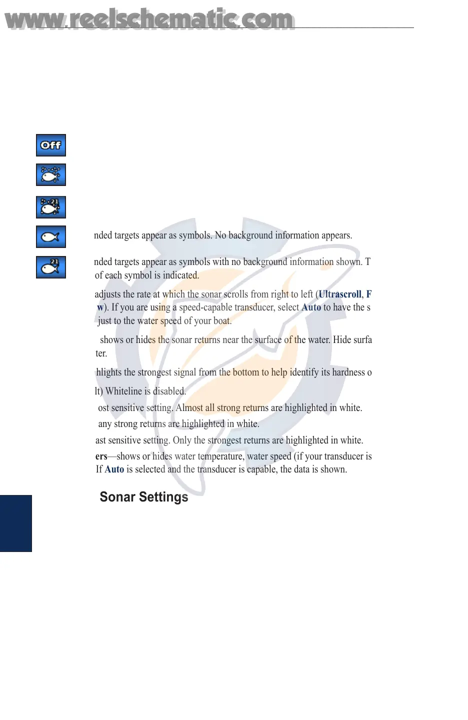 Scroll Speed—adjusts the rate at which the sonar scrolls from right to left (Ultrascroll, Fast,