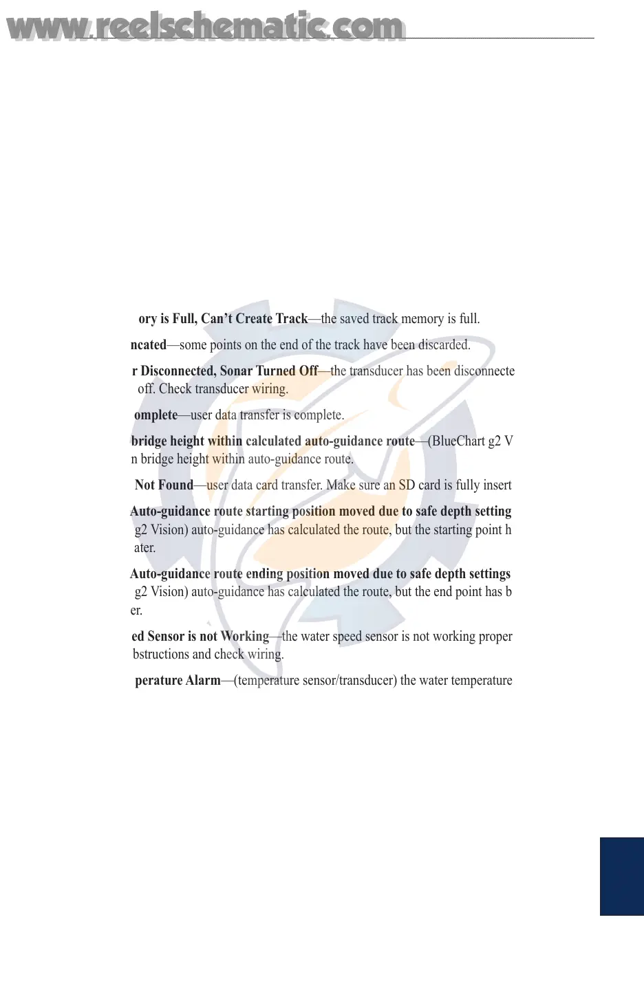 Sonar Service Lost—(sonar) the unit has lost communications with the remote sonar unit. Check
