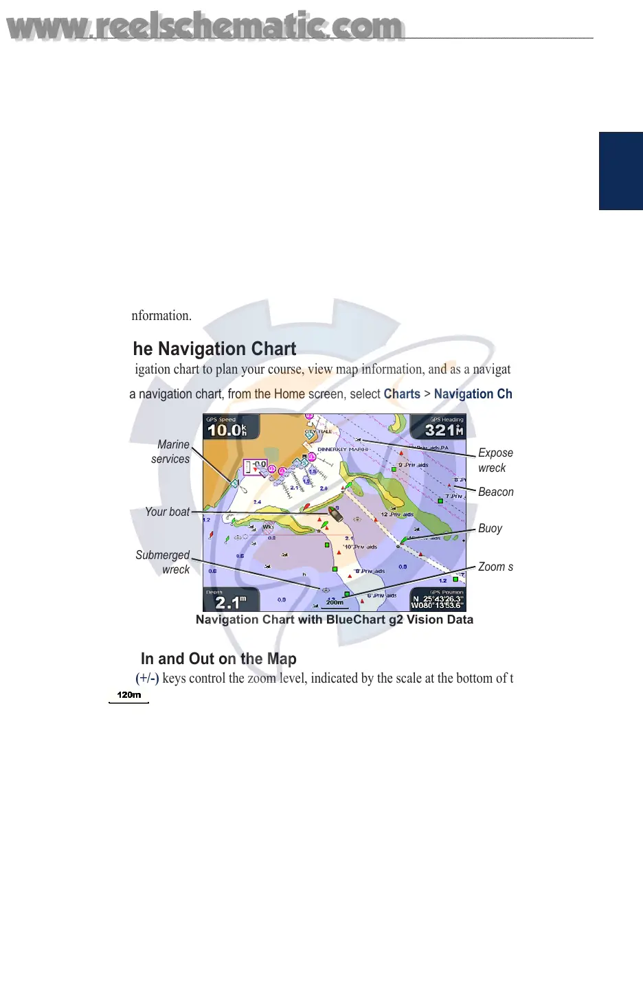 Use the navigation chart to plan your course, view map information, and as a navigational aid.