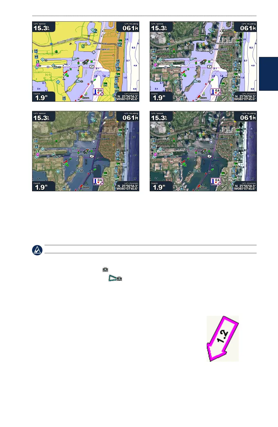 1. From the Navigation chart, use the Rocker to highlight a camera icon with the pointer: