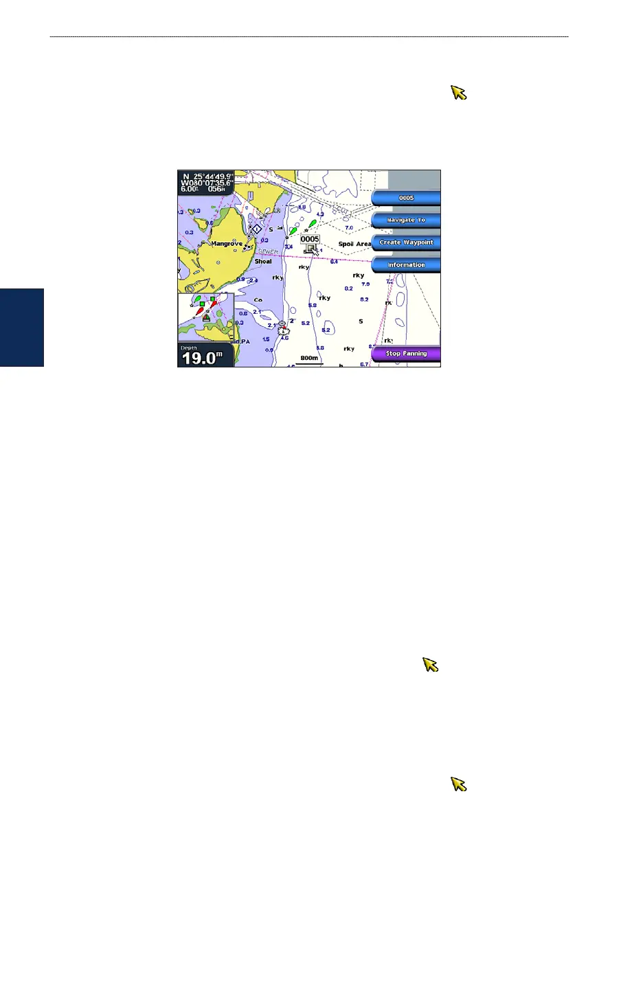 From the Navigation chart, press the Rocker and use the map pointer ( ) to highlight the