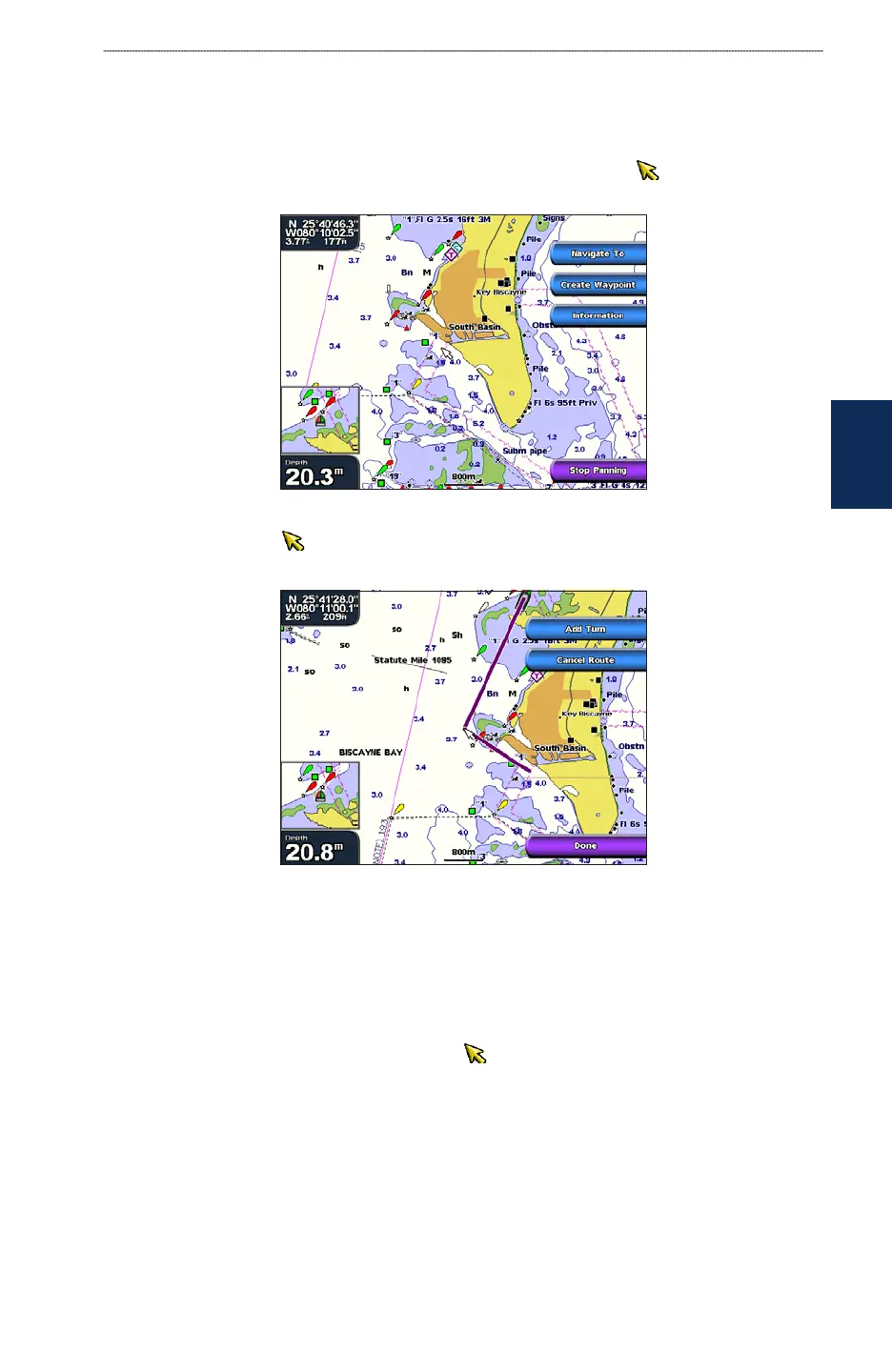 1. From the Navigation chart, press the Rocker and use the map pointer ( ) to choose your