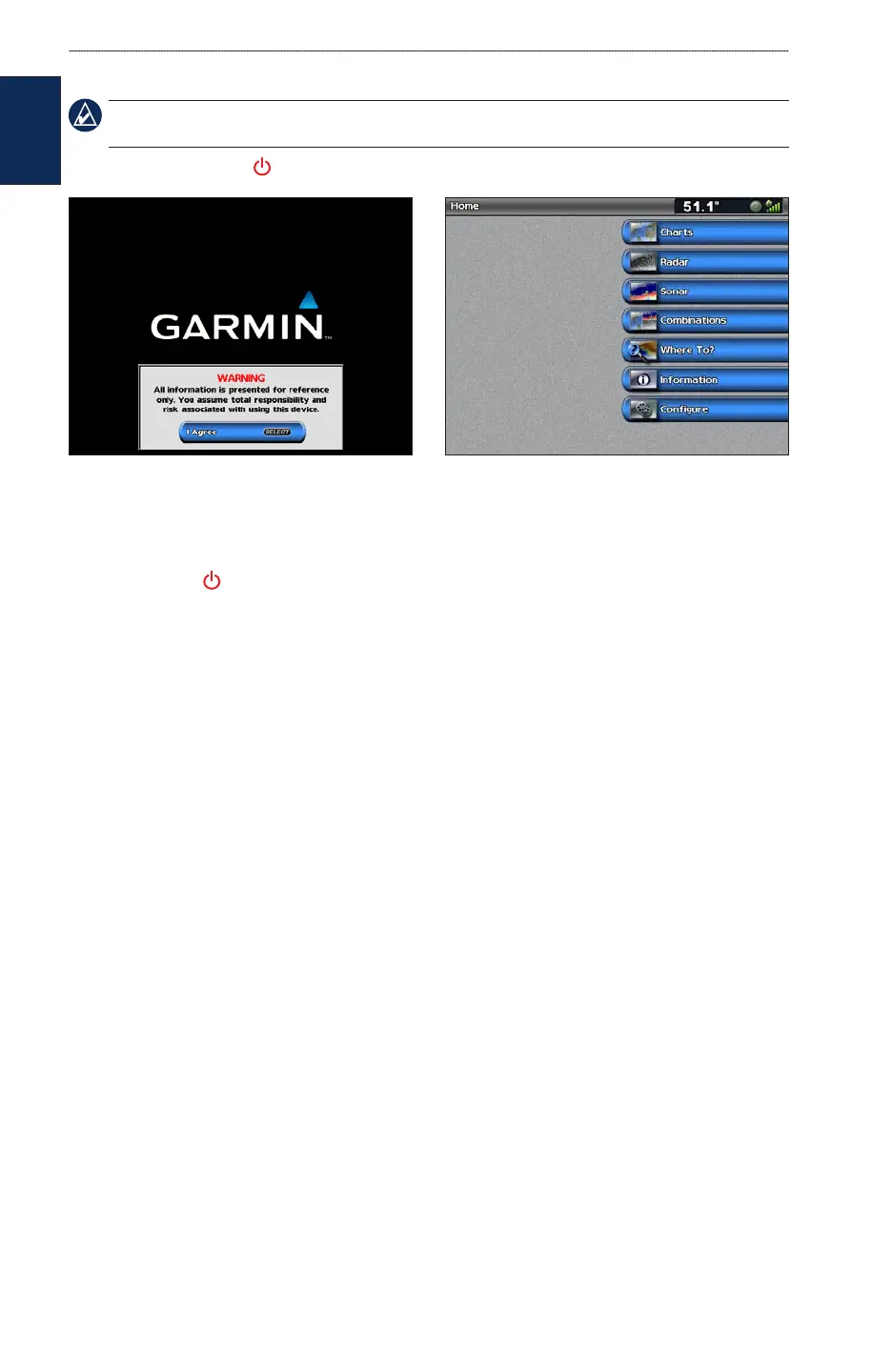 NOTE: The rst time you power on your chartplotter, you must go through a setup sequence. See