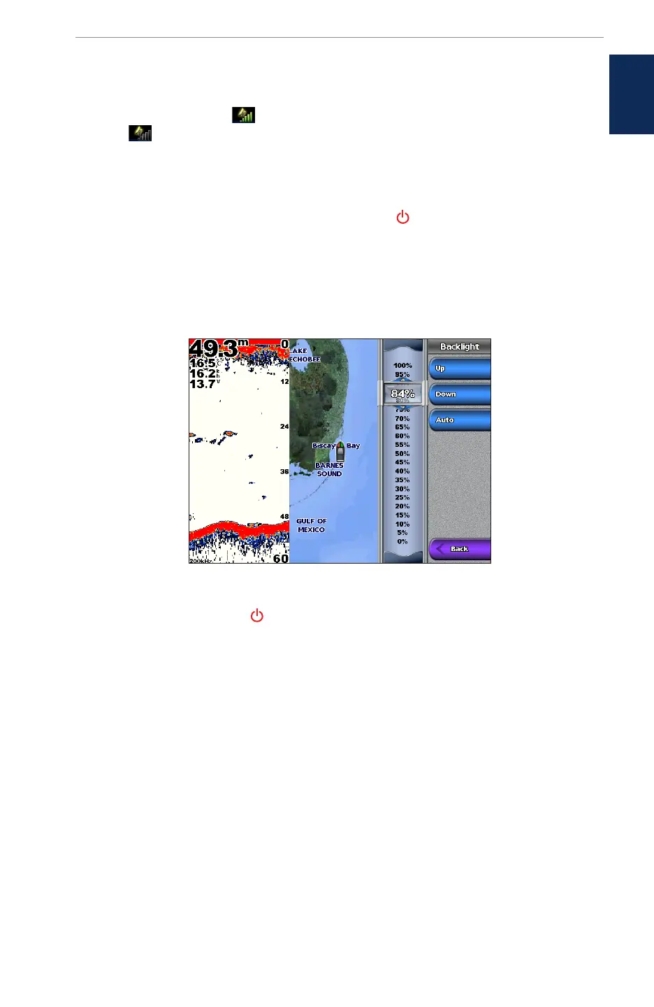 of the Home screen are green . When the chartplotter loses satellite signals, the green bars