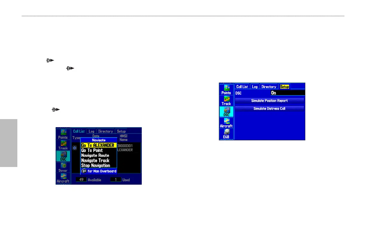 2. With Go To (MMSI/Name) or (DSC) highlighted, press ENTER.