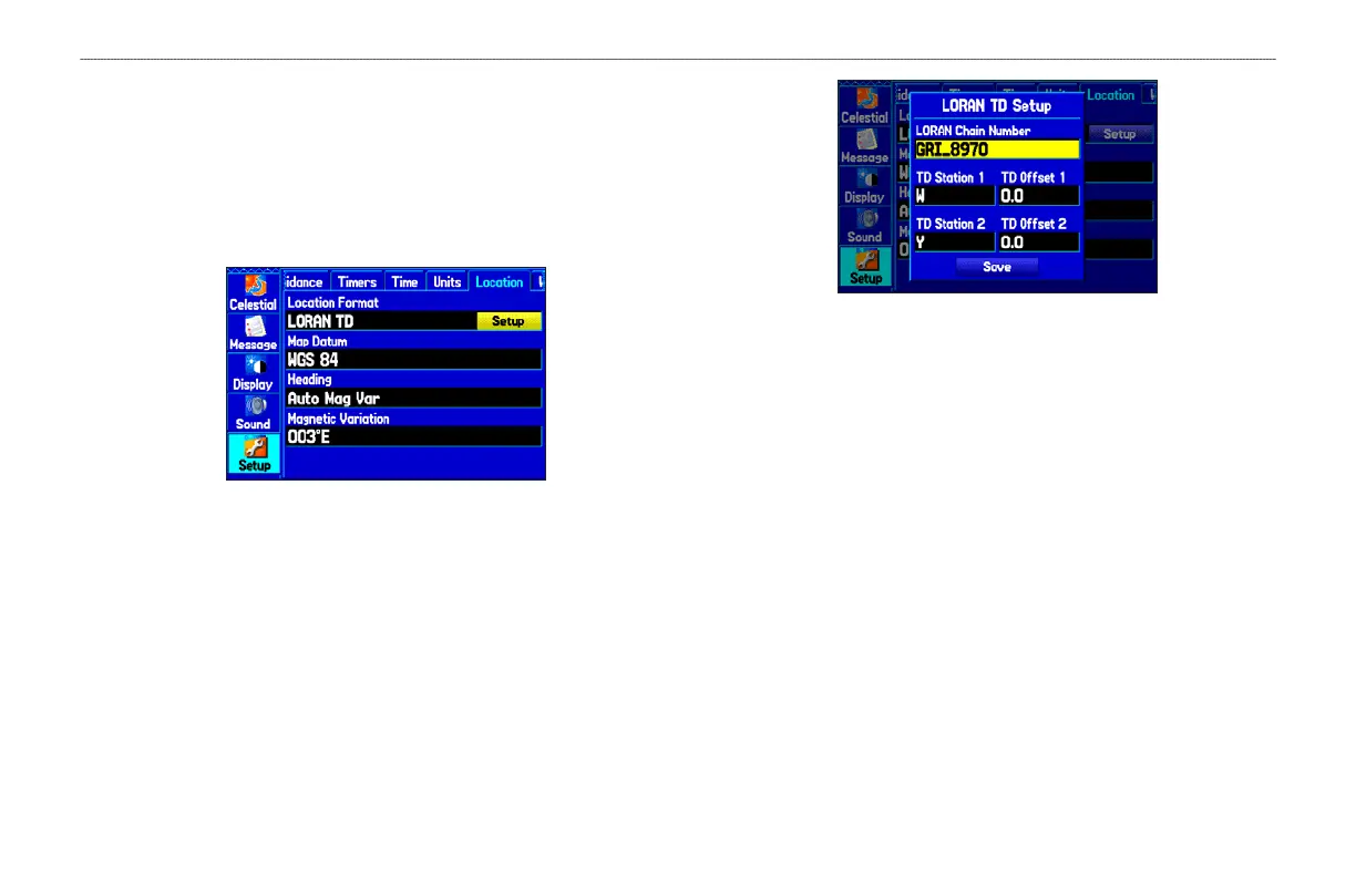 Location Format field, and press ENTER. The Loran TD Setup