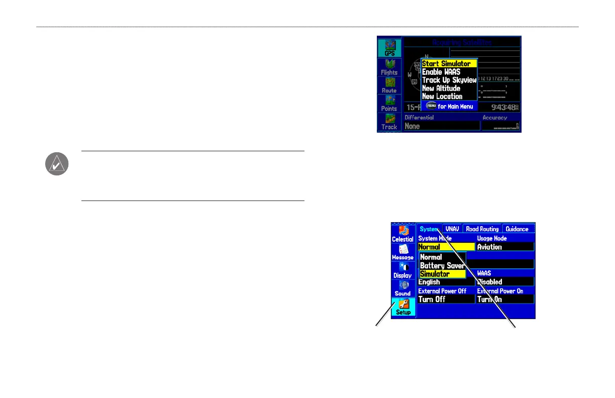the unit is set to Simulator Mode, the GPS receiver is turned off.