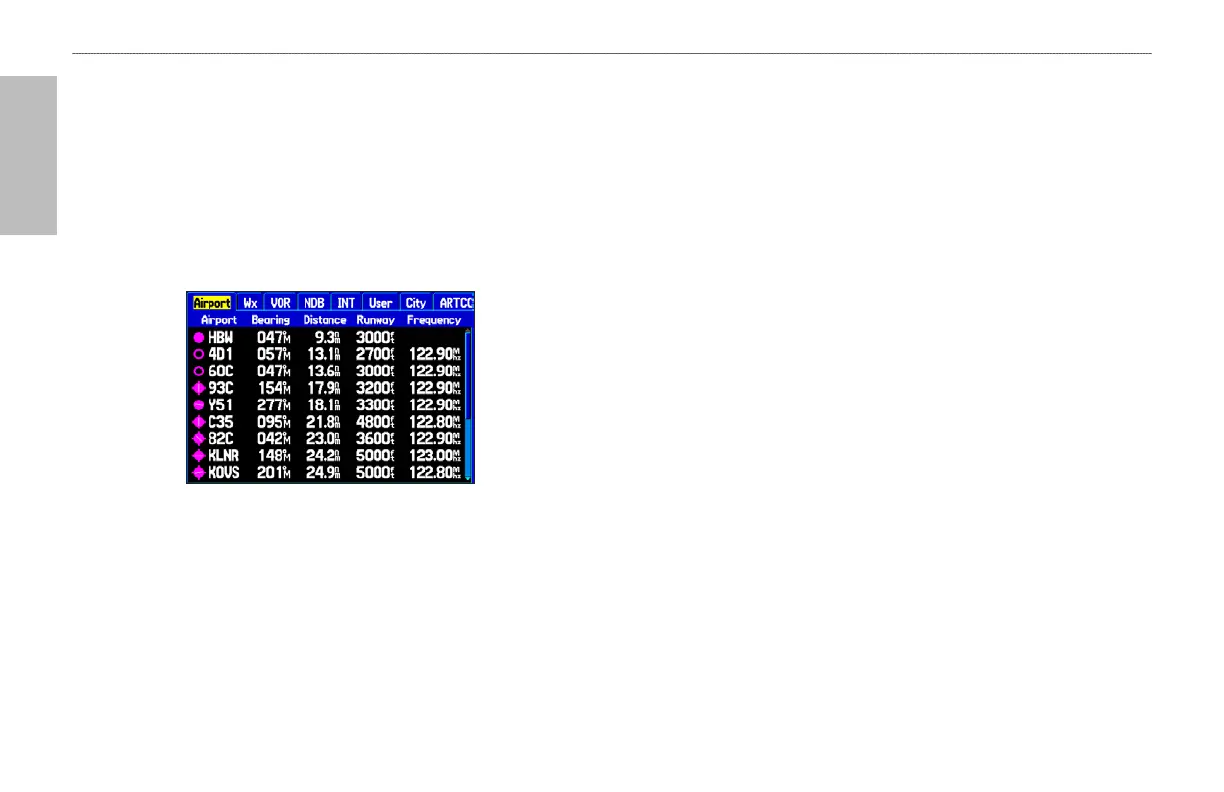 In Aviation Mode, press NRST/FIND to open the Nearest Pages.