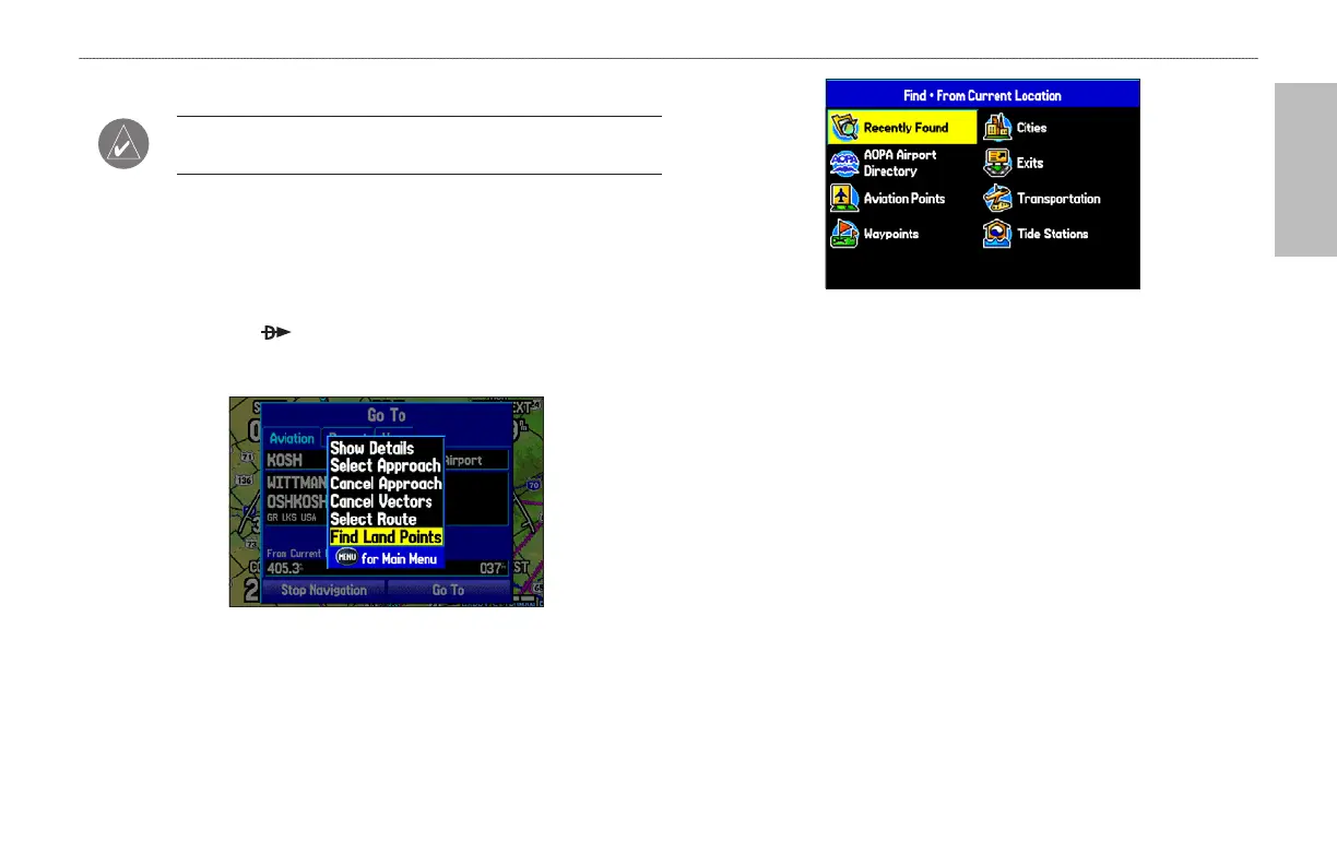 3. Highlight Find Land Points, and press ENTER. The Find Menu