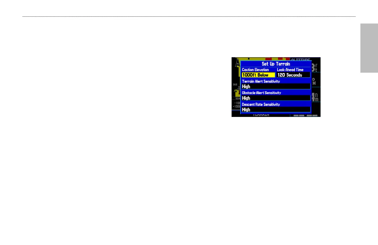 Use the Terrain Setup Page to set levels for terrain alerts, as well as