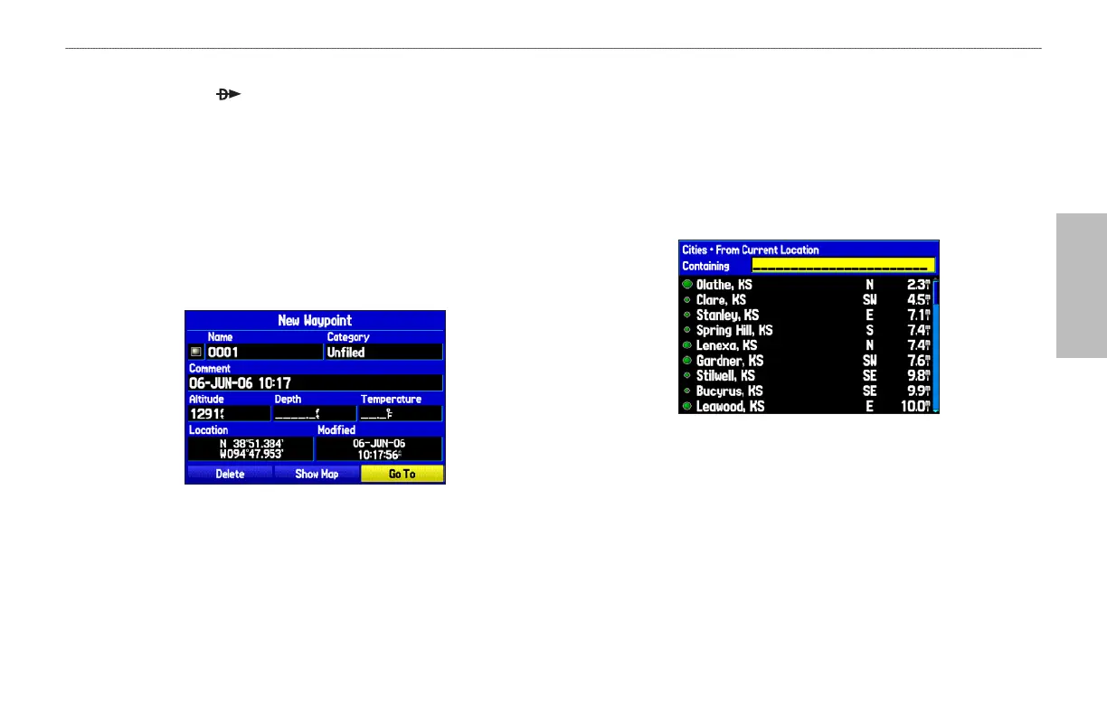 4. Select a waypoint from the list, and then press ENTER to show