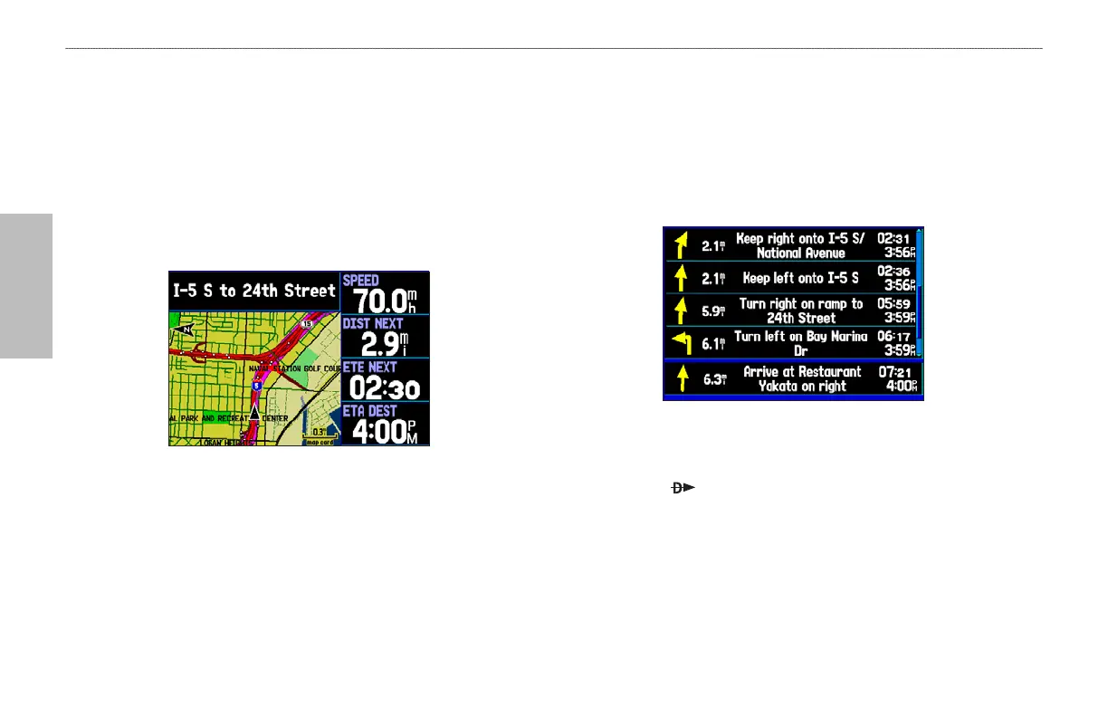 route, the next turn appears at the top of the list.
