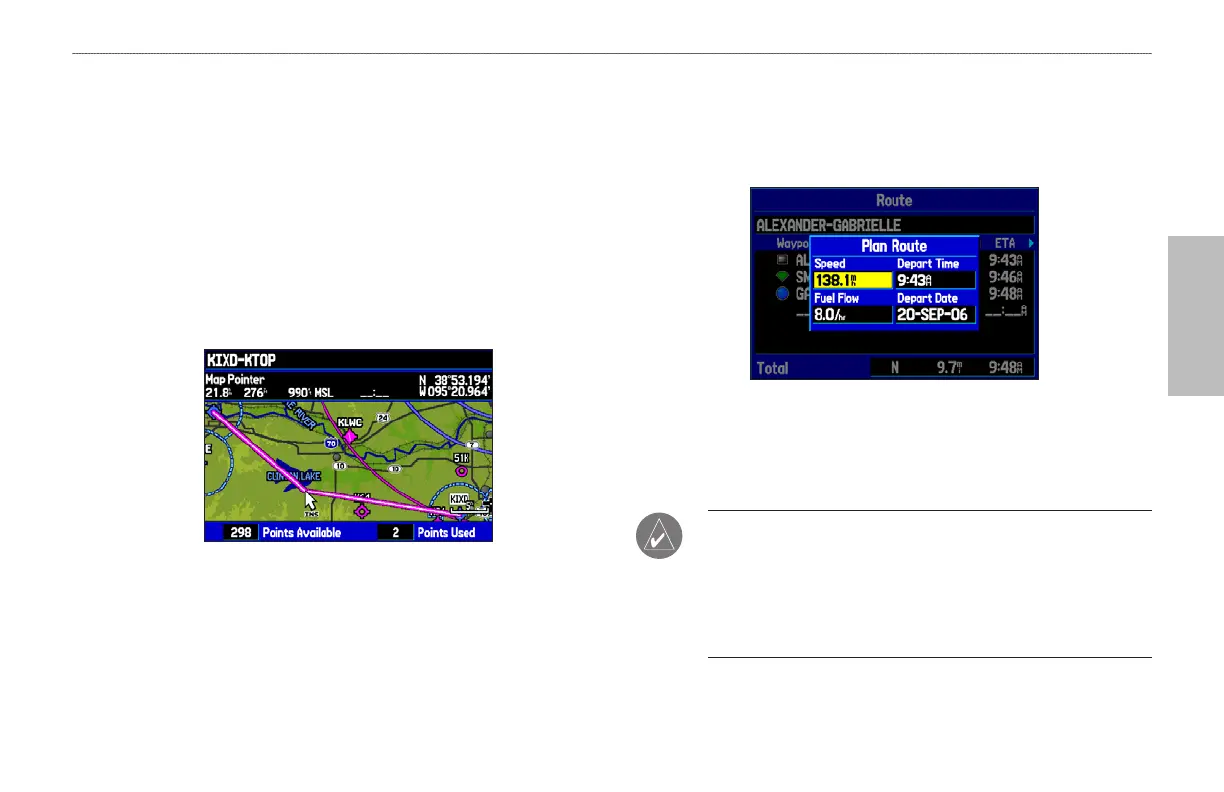 2. Highlight Plan Route, and press ENTER. (Highlight Set Speed
