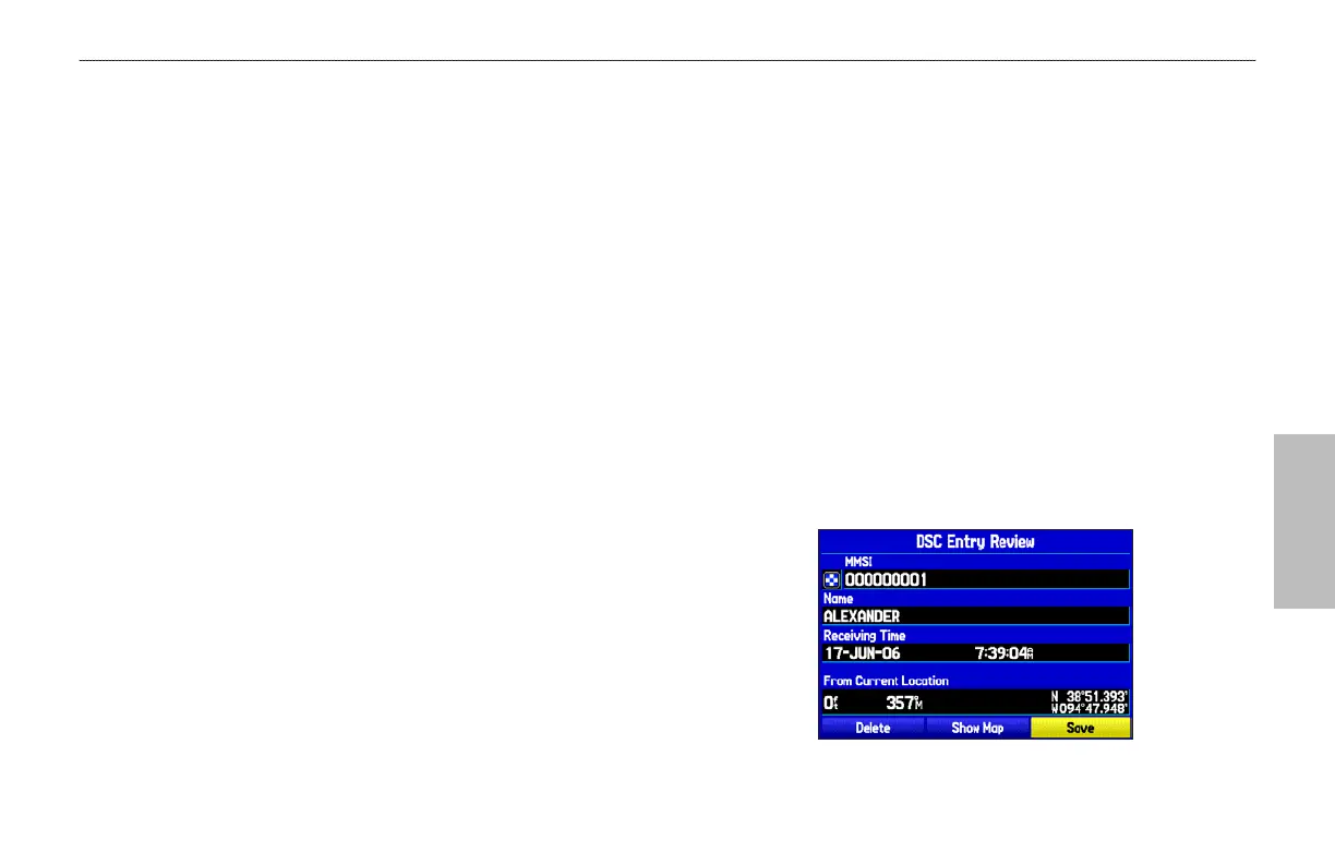 appear, and an alarm tone is sounded. Distress calls are shown in the