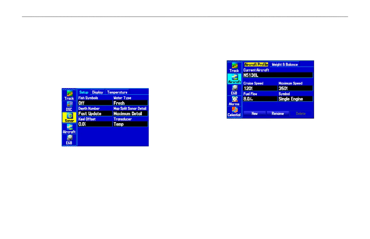 The Sonar tab contains options for the Sonar Page. See the “Setting