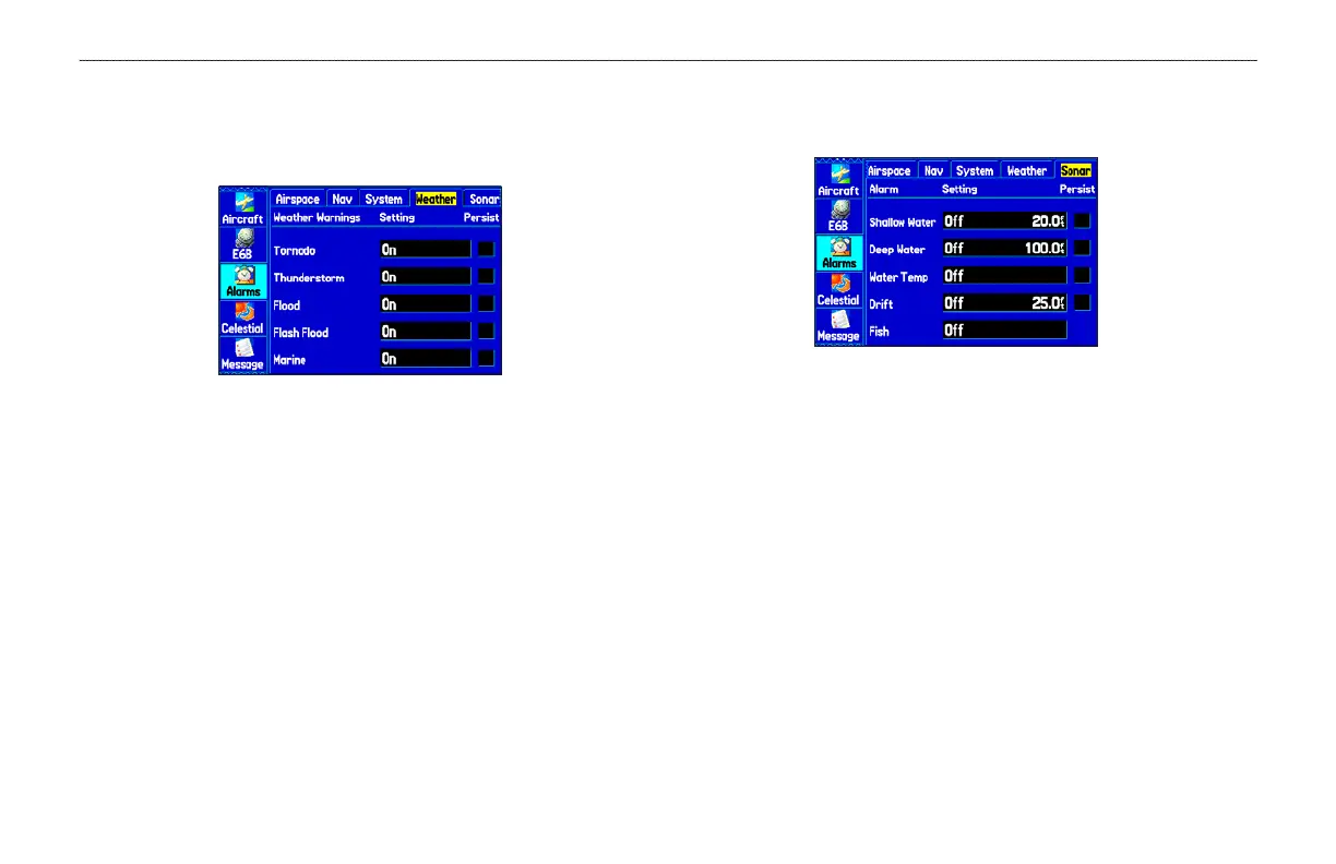 Sonar Alarms Sub Tab (Marine Mode Only)