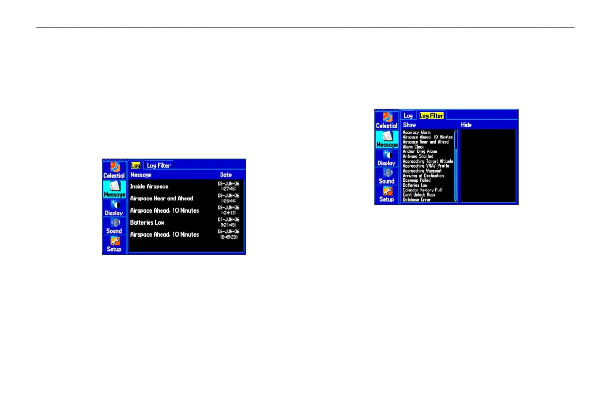 3. Use the ROCKER to highlight the Log Filter tab. By default