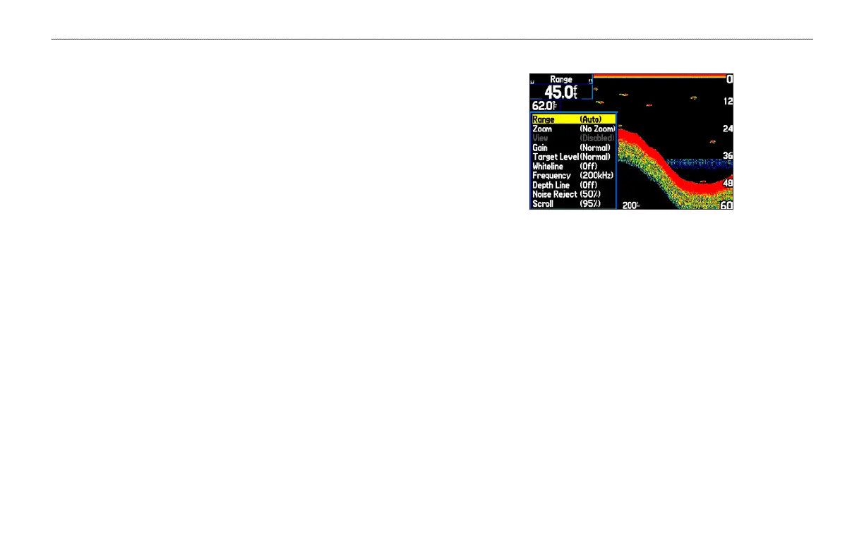 Scroll—adjusts the rate that the sonar screen scrolls from right to