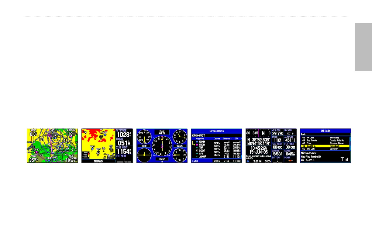 appears below. Each page has a specific use and is discussed later in this manual. Aviation Mode is the default mode for the GPSMAP 496.