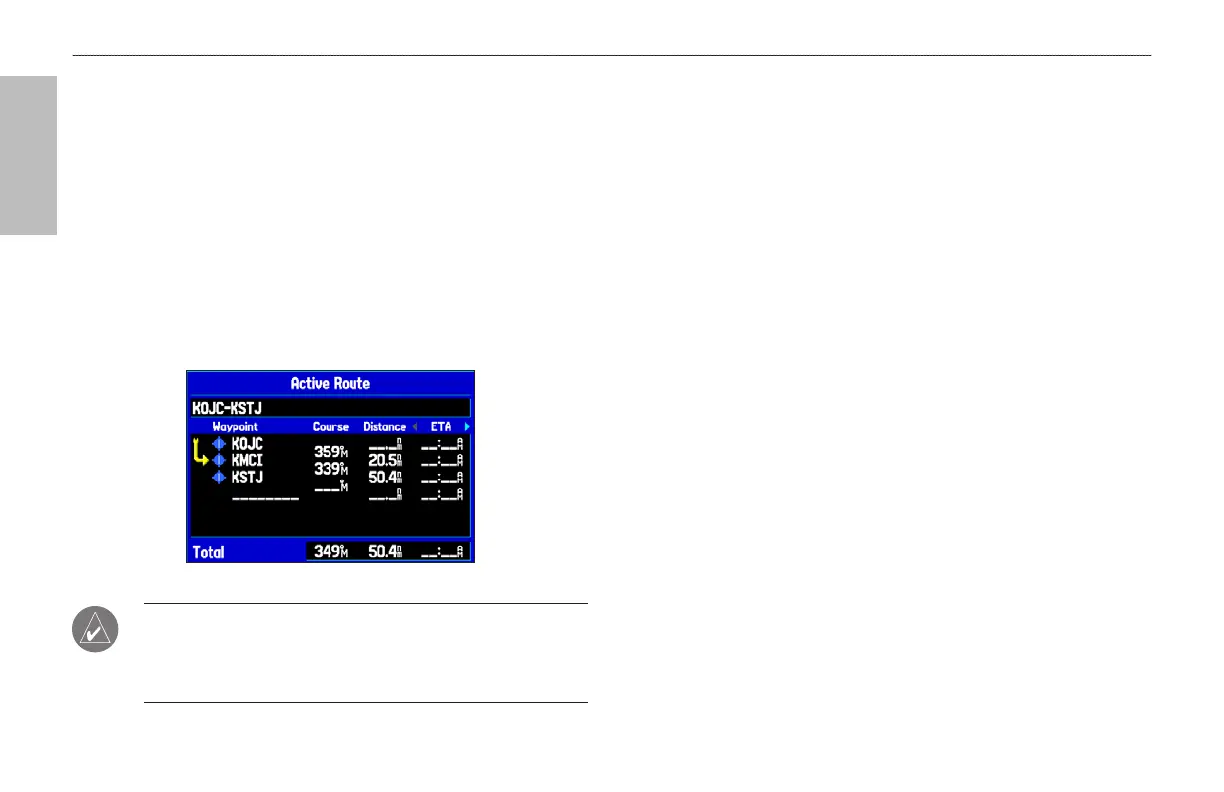AVIATION MODE PAGES > ACTIVE ROUTE PAGE