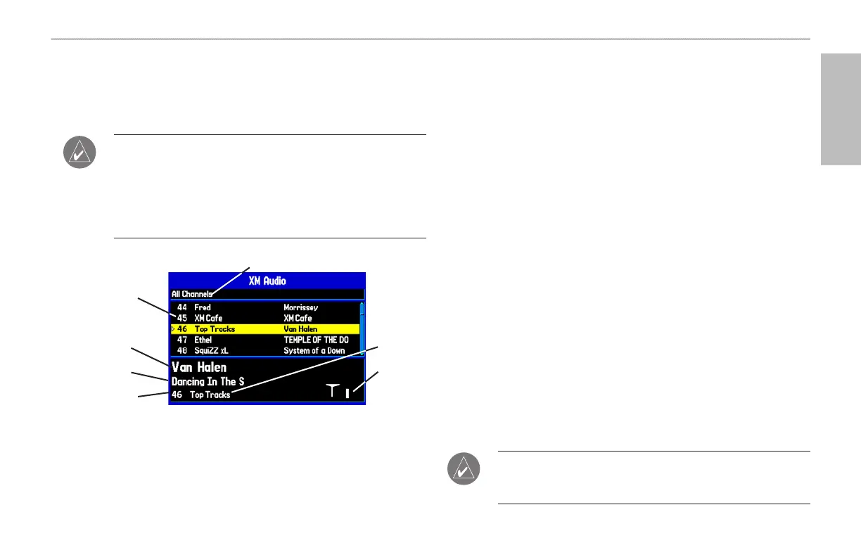 AVIATION MODE PAGES > XM AUDIO PAGE