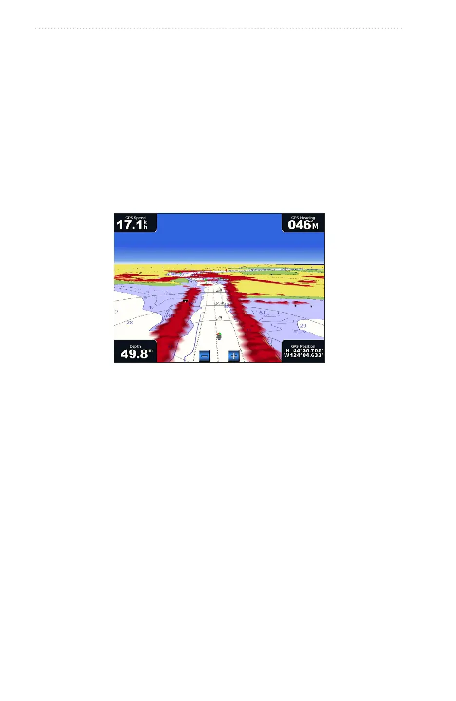You can show radar returns from the surface of the water in Perspective 3D or Mariner’s Eye 3D.