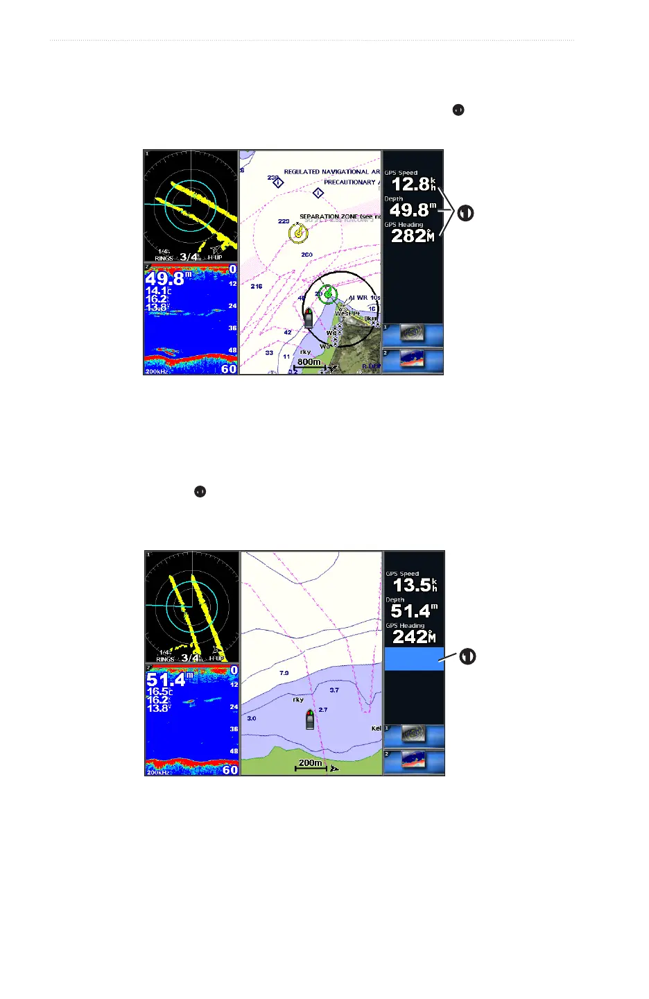 The Combinations screen can display up to six data elds in the GPSMAP 4000 series, and up to eight data