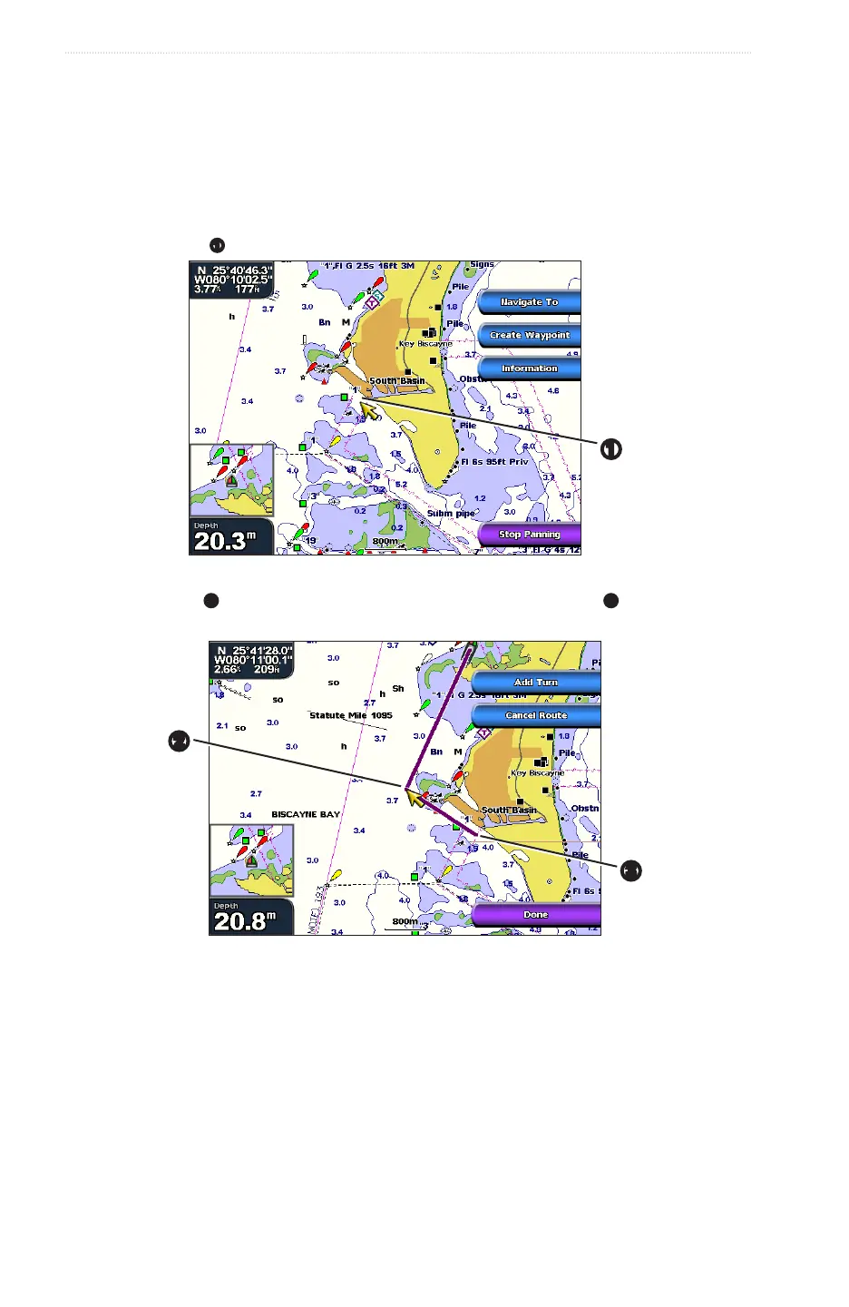 10. Follow the magenta line, steering to avoid land, shallow water, and other obstacles.