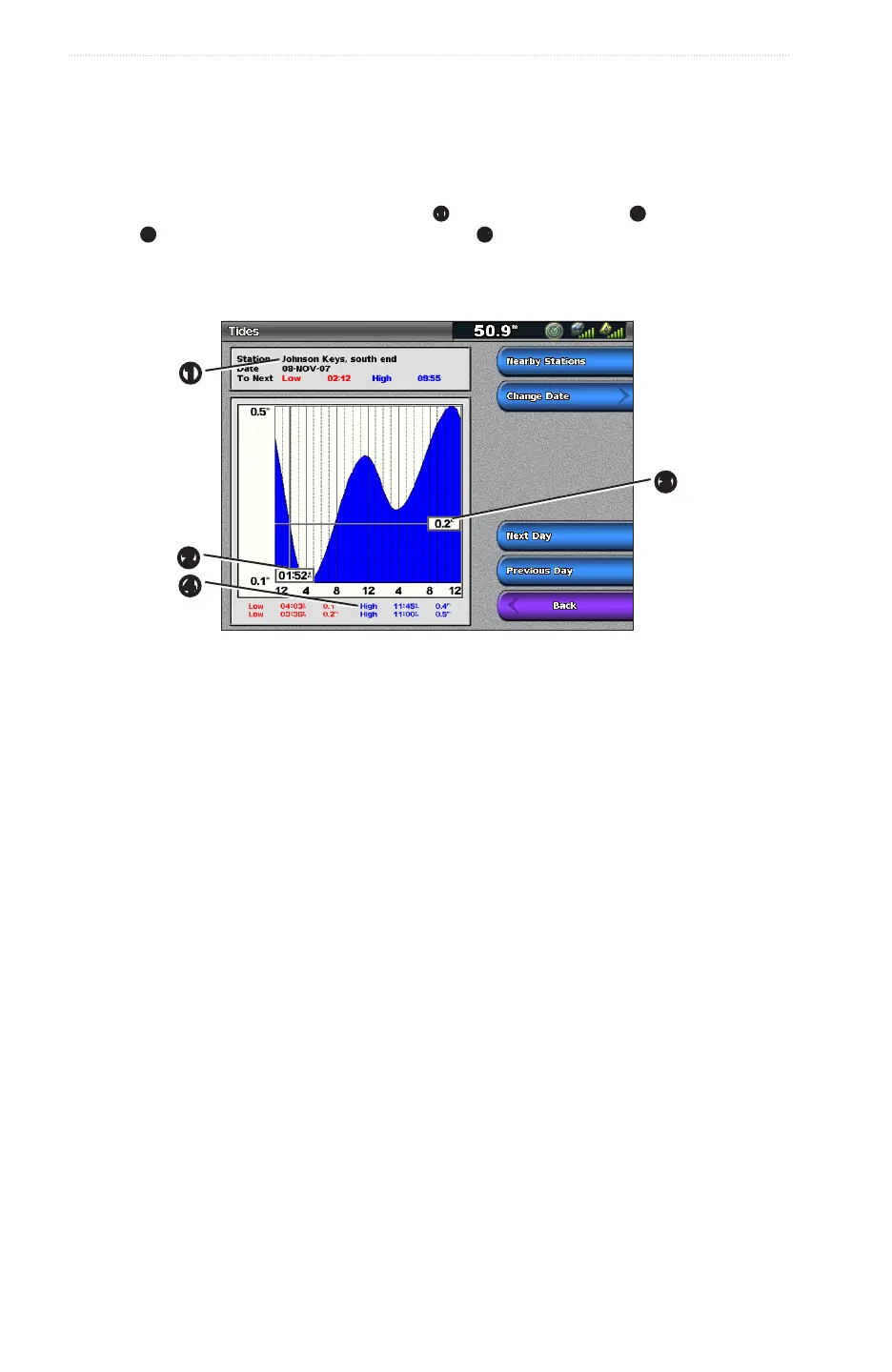 The Information screen displays information about tides, currents, celestial data, gauges, and video.
