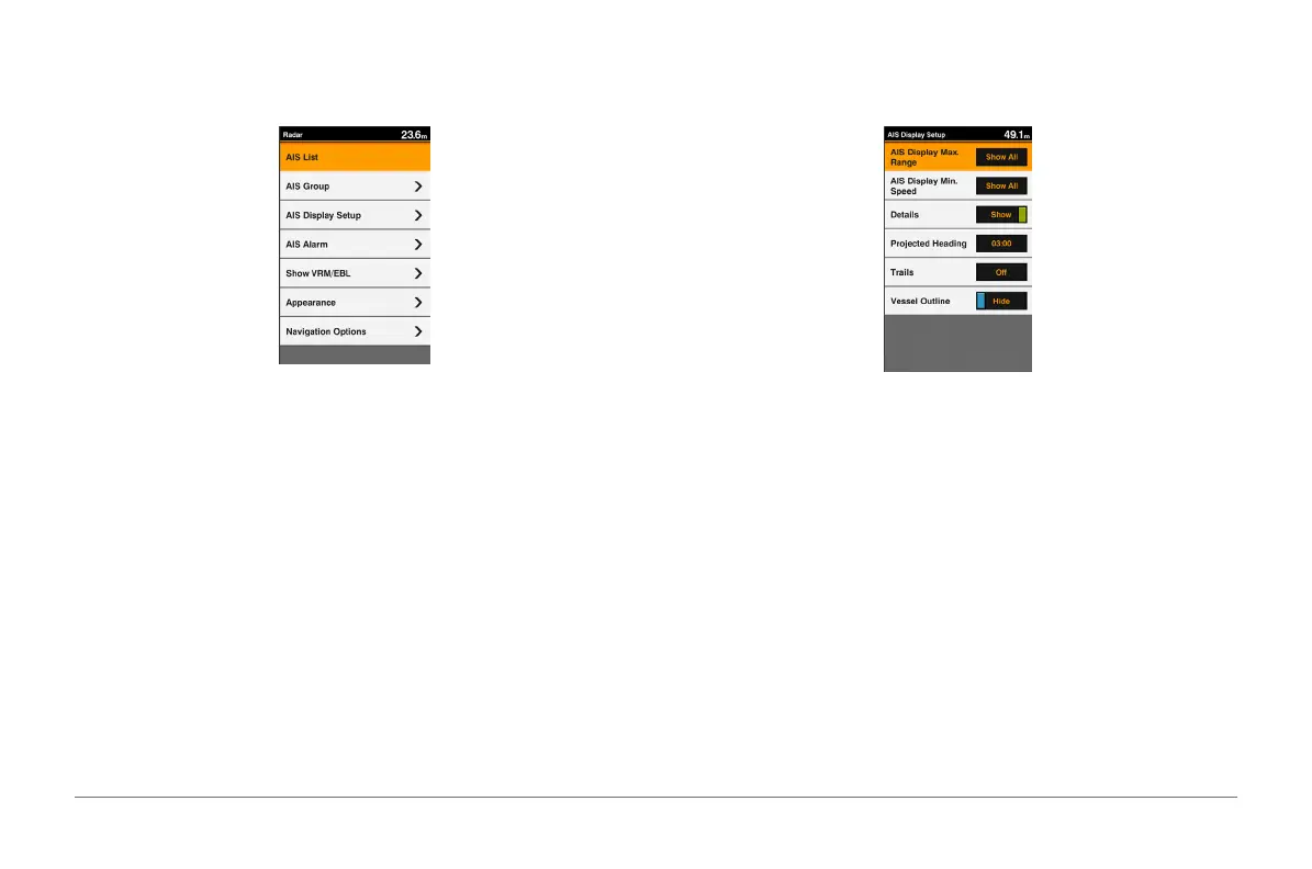 1 From the AIS Radar screen, select MENU > AIS Display Setup.