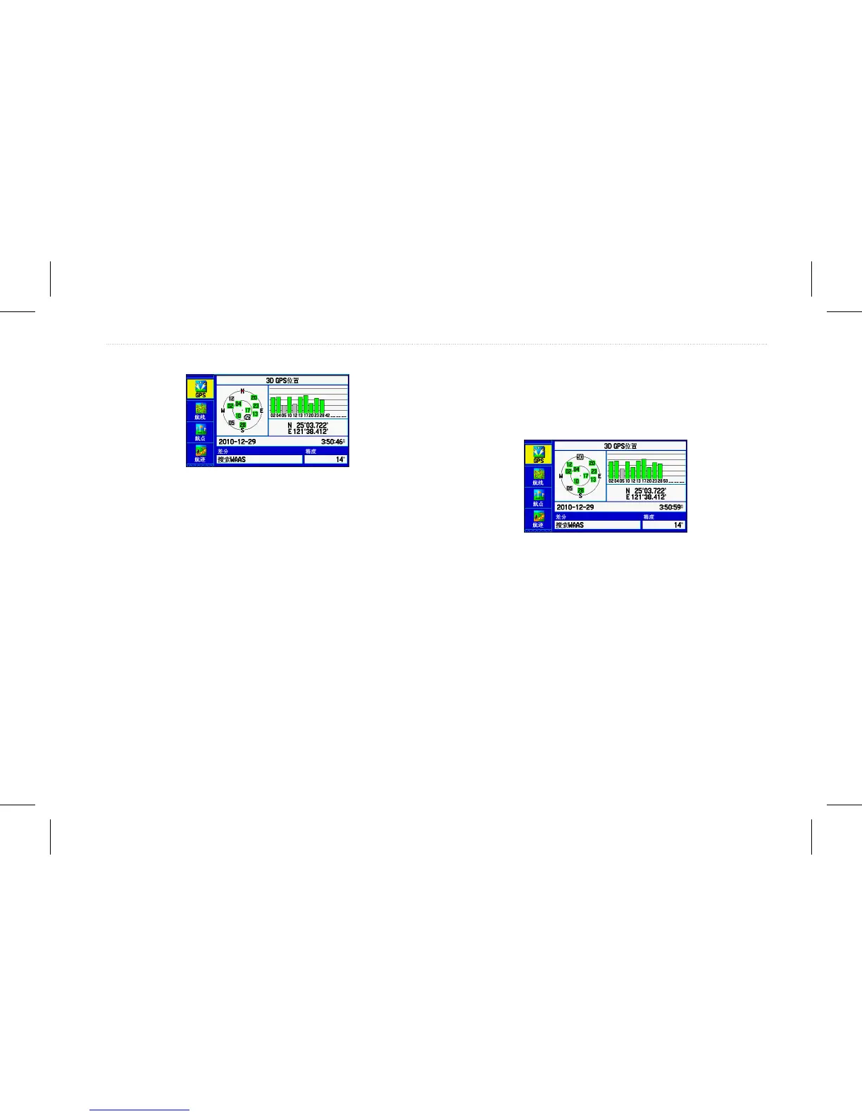 当设备收集卫星信号时,会出现“ GPS”页面,此过程只需