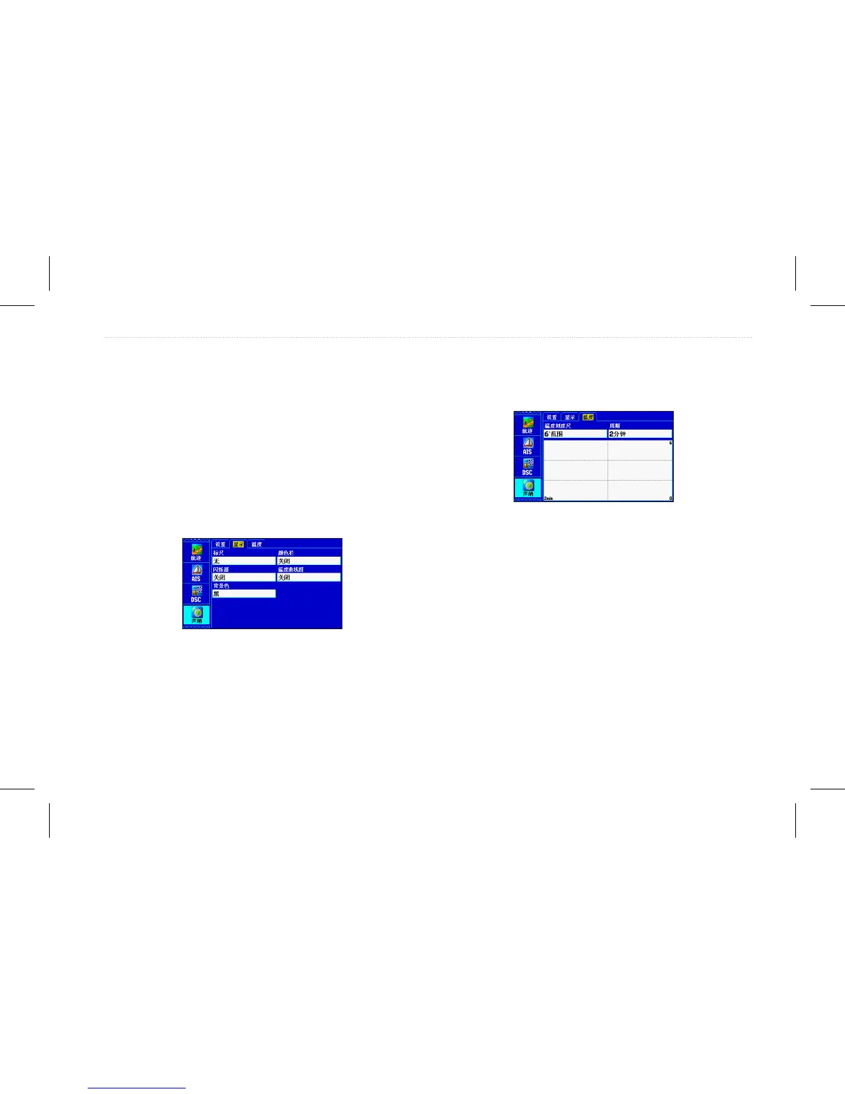 此页面用来设置声纳信息在屏幕上的显示方式。