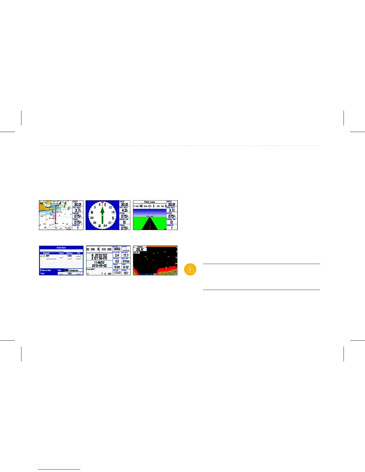 The GPSMAP 580/585 has ve main pages. If you have an optional