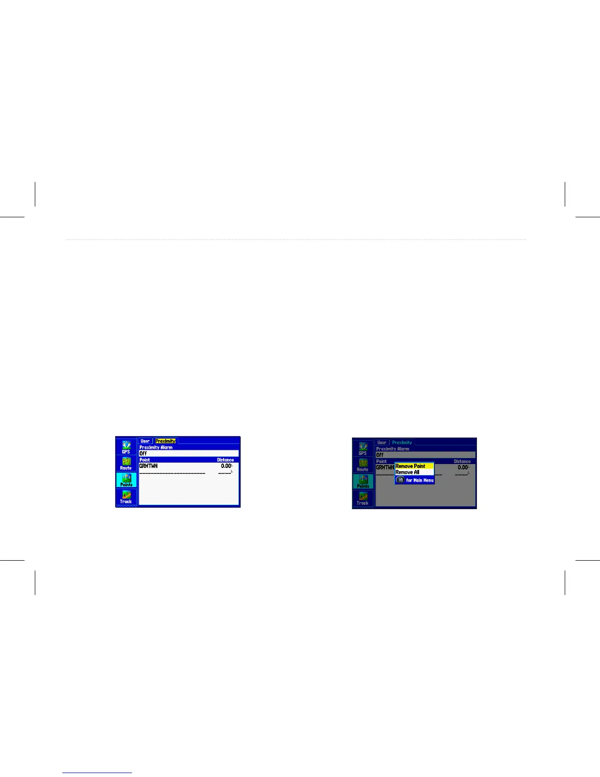 2. Highlight the proximity waypoint you want to clear, and press